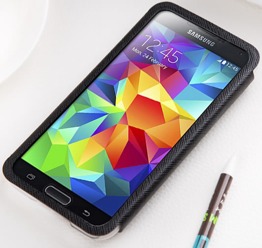 It features a transparent plastic view window, so you can view time, battery status, SMS, music track and caller ID without opening the case. With smart awakening function you can open the leather flip to wake up your phone. Close the case and it automatically goes to sleep.